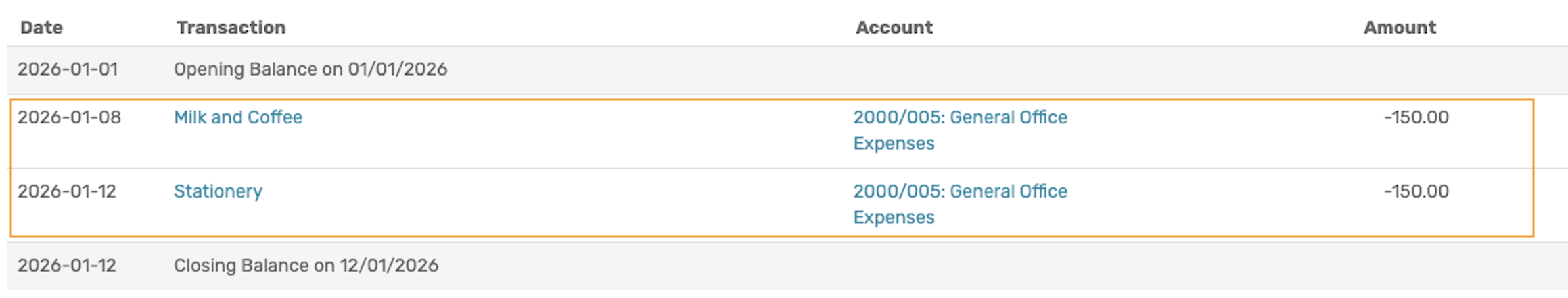 Petty Cash expenses are captured as payment transactions.